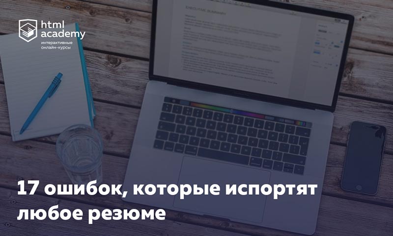 Серёжа Попов, руководитель фронтенд-аутсорса «Лига А.», где трудятся выпускники HTML Academy, рассказал, какие 17 ошибок нельзя делать при составлении резюме и на других этапах поиска работы: