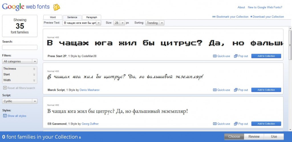 - Мало шрифтов в коллекции, особенно кириллических. В основном это свободные шрифты, а ведь часто нам нужны наиболее вкусные.