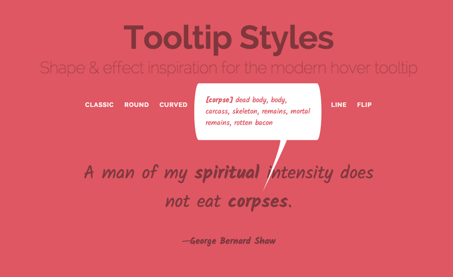 Сегодня мы хотели бы поделиться с вами некоторыми стилями и эффектами для создания всплывающих подсказок. Они обычно используется для вывода какой-то дополнительной информации и встречаются практически на каждом сайте. Эти маленькие помощники предлагают широкие возможности для добавления изысканных и уникальных эффектов к любому дизайну. Так что сегодня мы покажем вам некоторые возможности по стилизации всплывающих подсказок.