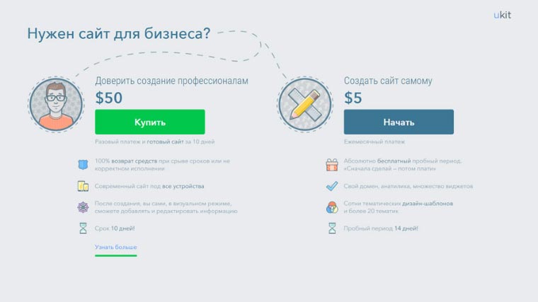 uKit – качественный конструктор сайтов, нацеленный на аудиторию представителей малого и среднего бизнеса. То есть занятых людей, не имеющих никакого отношения к разработке сайтов. Он позволяет получить привлекательный результат за короткое время без специализированных знаний.