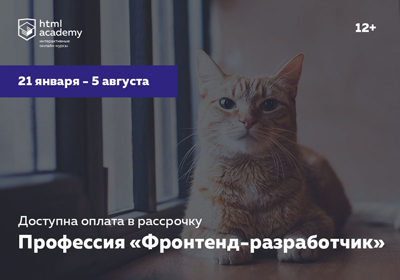 Доступна оплата в рассрочку для программы профессии «Фронтенд-разработчик», которая пройдёт с 21 января по 5 августа 2019 года.