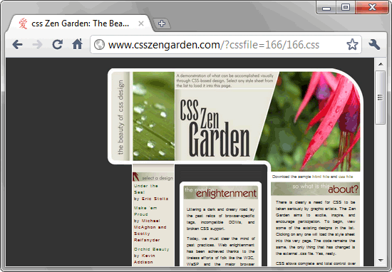 Двухколоночный макет наиболее популярен в веб-дизайне за счёт своей универсальности и простоты. В широкой колонке располагается контент, а в узкой, называемой ещё на жаргоне веб-разработчиков сайдбар (от англ. sidebar, боковая панель) навигация. Впрочем, ничего не мешает сделать колонки одинаковой ширины, если это продиктовано дизайном. На рис. 5.11 представлен макет, состоящий из двух колонок, в правой колонке расположена навигация, а в левой контент.