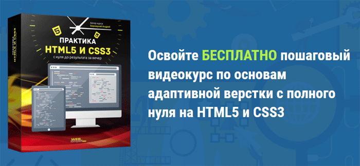 Прямо сейчас забирайте БЕСПЛАТНО пошаговый видеокурс по основам адаптивной верстки с полного нуля на HTML5 и CSS3.