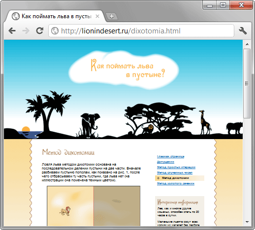 Рис. 6.18. Главная страница сайта lionindesert.ru